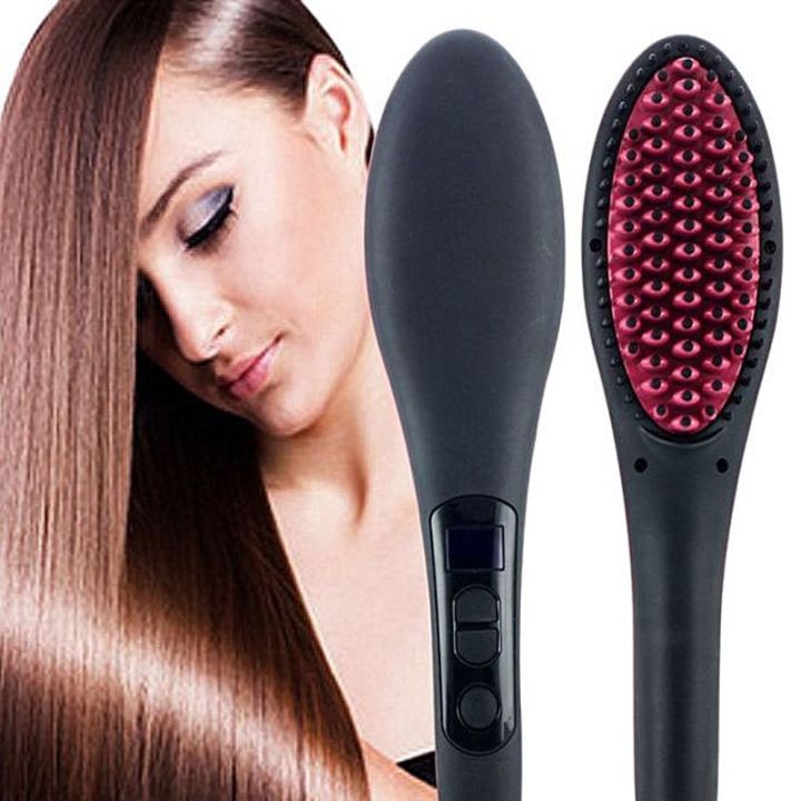 Product details of Simply Straight Ceramic Brush Hair Straightener - Black and Pink